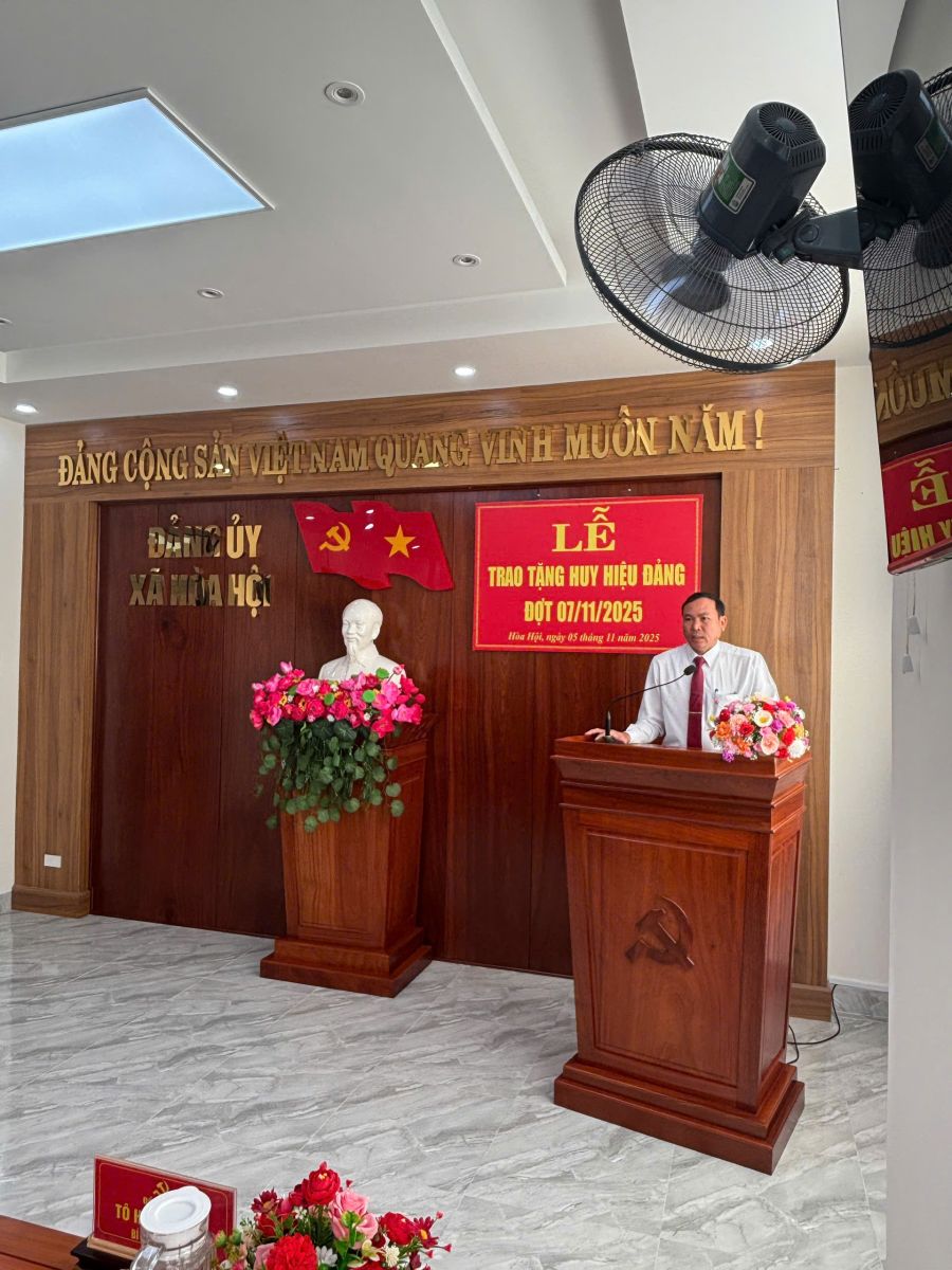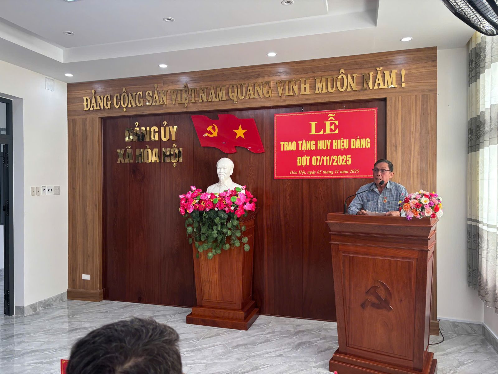 Phát biểu tại buổi lễ, đồng chí Lê Văn Cường - Phó Bí thư Thường trực Đảng ủy xã Hòa Hội bày tỏ sự trân trọng, biết ơn đối với những đóng góp to lớn, bền bỉ của các đảng viên lão thành. Đồng chí nhấn mạnh: “Các đồng chí được nhận Huy hiệu Đảng hôm nay là những tấm gương sáng về tinh thần kiên trung, mẫu mực trong công tác, lao động và đời sống. Đảng bộ xã Hòa Hội mong các đồng chí tiếp tục phát huy phẩm chất người đảng viên, mãi là chỗ dựa tinh thần, là điểm tựa niềm tin cho thế hệ trẻ noi theo.”