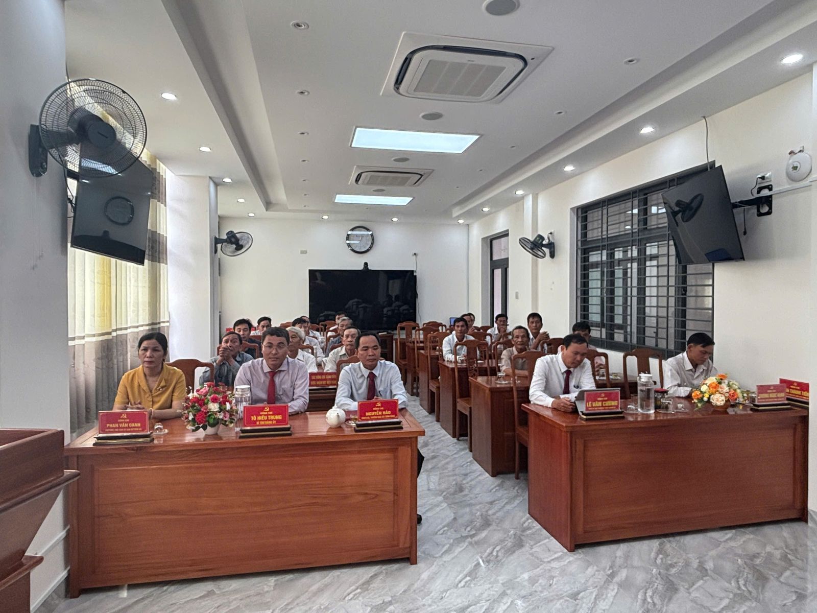 Đồng chí Tô Hiếu Trung - Bí thư Đảng ủy, Chủ tịch HĐND xã, cùng các đồng chí lãnh đạo xã tham dự Hội nghị