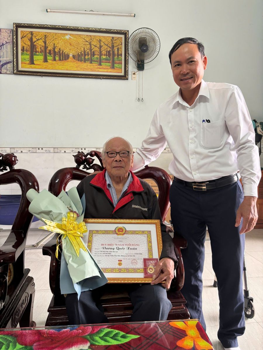 Do điều kiện sức khỏe không cho phép tham dự buổi lễ tập trung đợ này, Đảng ủy xã Hòa Hội đã tổ chức đoàn công tác đến tận nhà đồng chí Vương Quốc Xuân, đảng viên Chi bộ thôn Hòa Hội, để trao tặng Huy hiệu 70 năm tuổi Đảng. đồng chí Lê Văn Cường - Phó Bí thư Thường trực Đảng ủy xã, thay mặt Đảng ủy đã trao Huy hiệu và gửi lời chúc mừng, lời tri ân sâu sắc đến đồng chí Xuân. Đây là sự quan tâm, động viên kịp thời của Đảng ủy xã Hòa Hội đối với những đảng viên cao tuổi, thể hiện truyền thống “Uống nước nhớ nguồn”, tri ân công lao của các thế hệ đi trước đã có nhiều đóng góp to lớn cho sự nghiệp cách mạng của Đảng và của quê hương.
