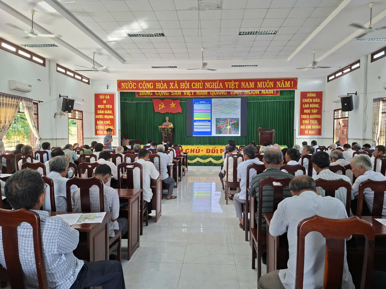Cán bộ đơn vị tư vấn trình bày nội dung Đồ án Quy hoạch chung xây dựng xã Hòa Hội