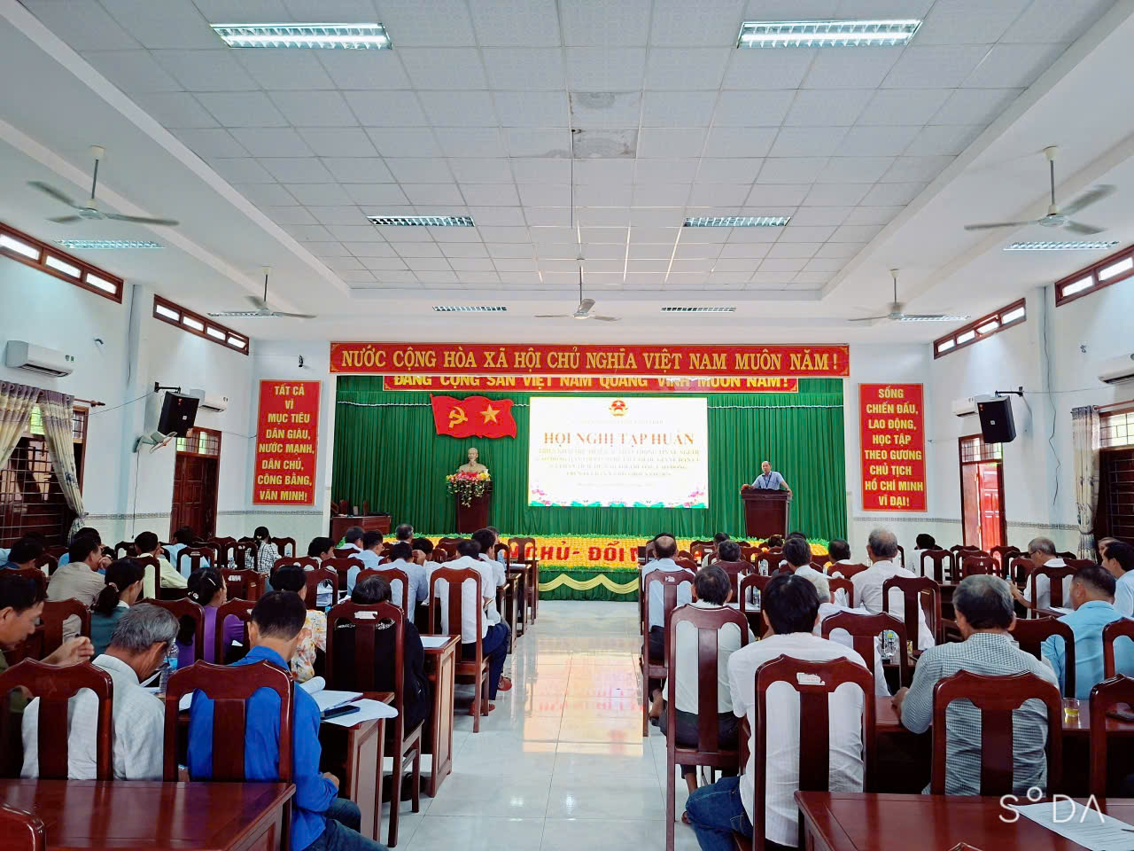 Đồng chí Nguyễn Hưng - Chuyên viên Phòng Văn hóa - Xã hội xã triển khai nội dung tập huấn cho các ĐTV