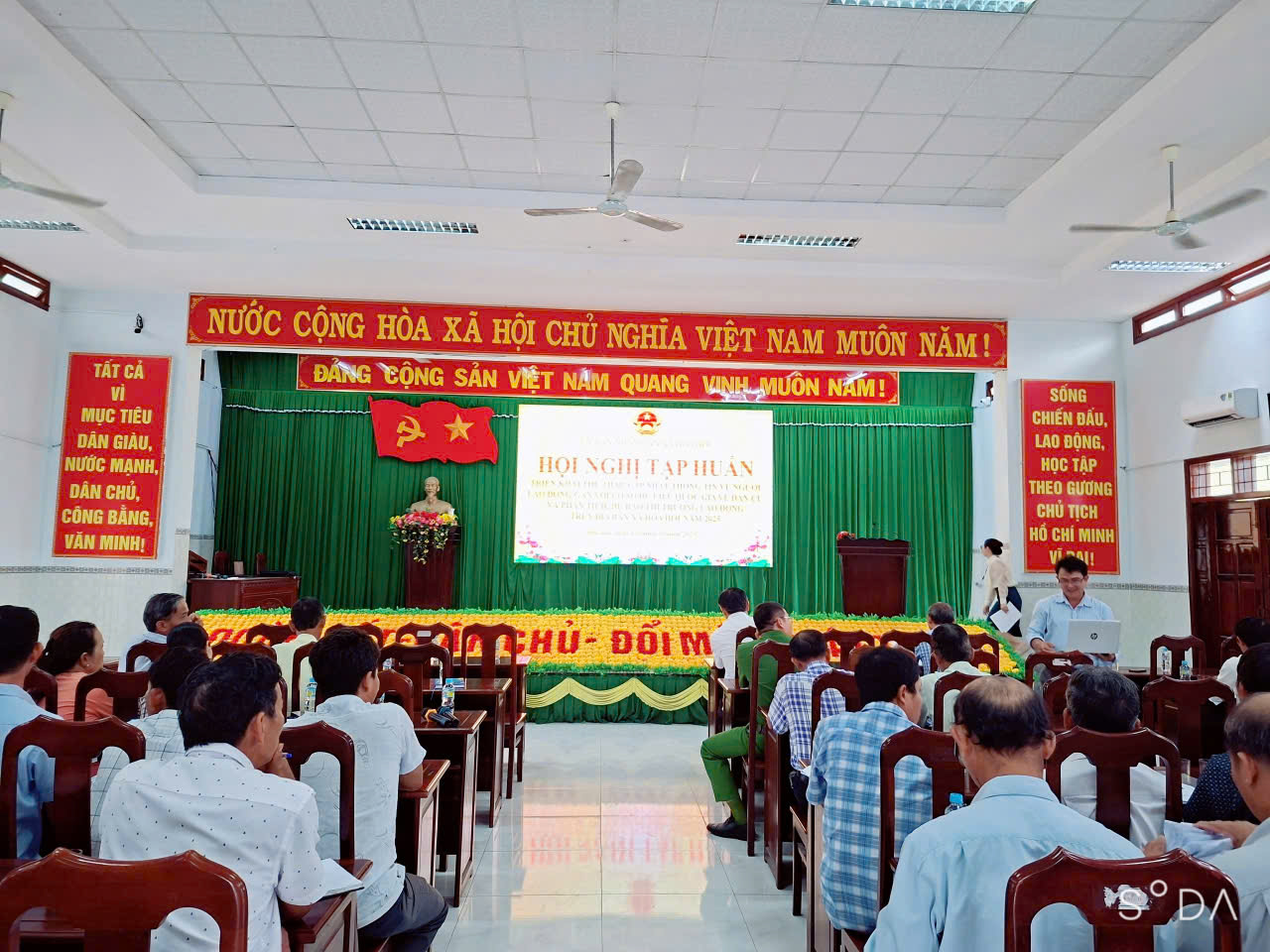 Chủ trì hội nghị có đồng chí Nguyễn Văn Thanh - Phó Chủ tịch UBND; cùng tham gia có các đồng chí Châu Văn Lộc - Trưởng Phòng Văn hóa - Xã hội; đồng chí Nguyễn Tư - Chánh Văn phòng HĐND và UBND xã, các đồng chí trong Tổ công tác cấp xã, các Tổ điều tra viên tại các thôn và đại diện các ban, ngành, đoàn thể trên địa bàn xã.
